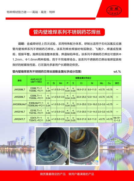 管內(nèi)壁堆焊系列不銹鋼藥芯焊絲